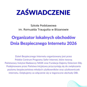 We wtorek, 10 lutego, w naszej szkole miały miejsce obchody Dnia Bezpiecznego Internetu, w które kolejny już raz zaangażowali się uczniowie klasy IIIa. W tym roku trzecioklasiści przypomnieli zasady bezpieczeństwa w sieci, a także wykonali prace, ilustrujące maskotkę tegorocznego przedsięwzięcia.