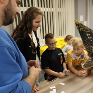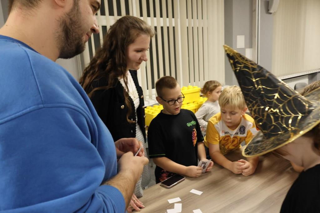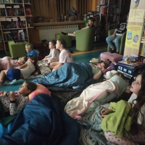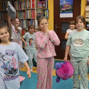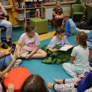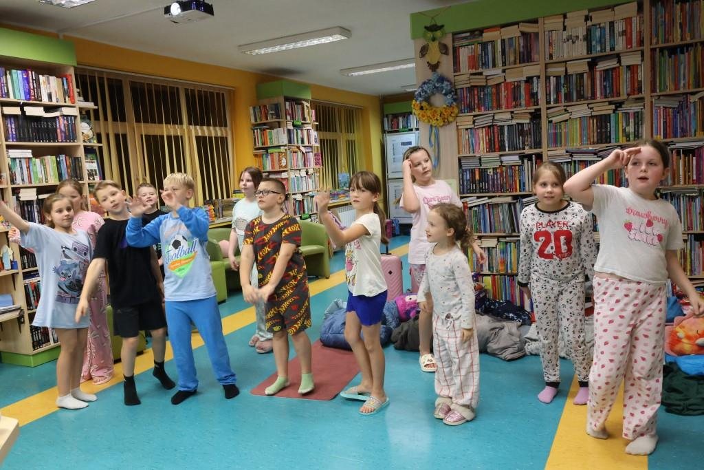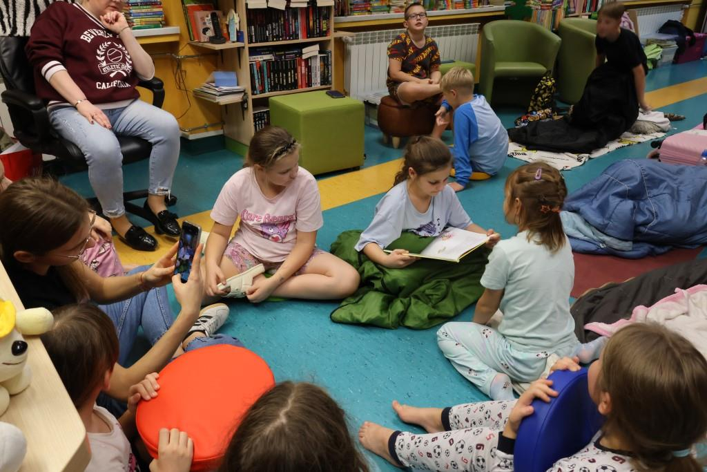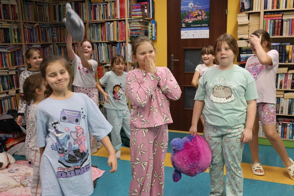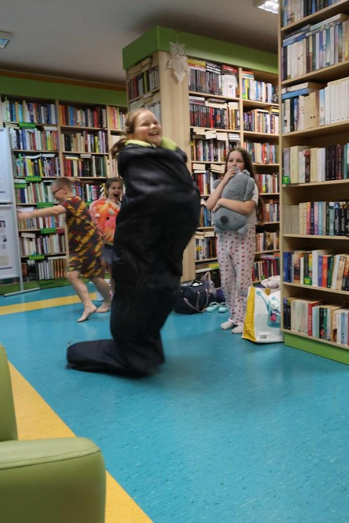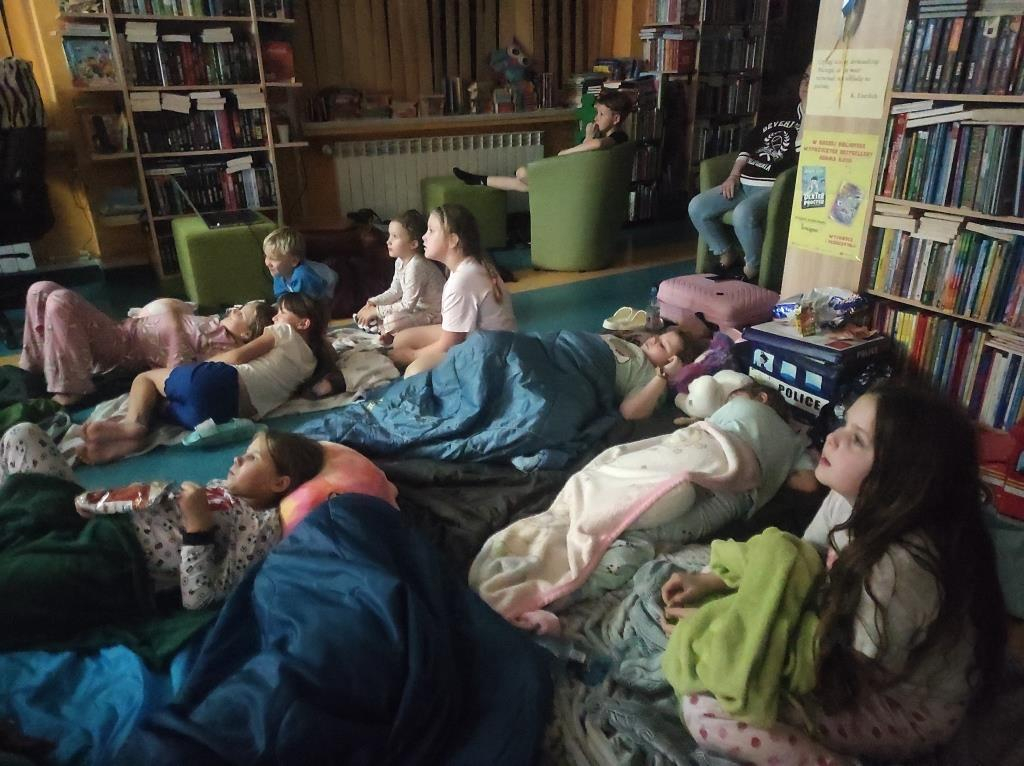 Była to również XI noc w blizanowskiej bibliotece, która od 2015r. organizowała dla umówionych grup uczniowskich po dwie noce w roku (w ferie i w czasie wyznaczonym przez Centrum Edukacji Obywatelskiej. Aktywną działalność na tym polu przerwała pandemia. Tym razem z 12-osobową grupą uczniów kl. IIIa Zespołu Szkolno-Przedszkolnego w Blizanowie nocowała ich wychowawczyni Ewelina Orpel, Gabi Oehl - uczennica kl. I SP nr 2 im. Jana Pawła II w Kaliszu oraz bibliotekarki GBP Blizanów: Paulina Wróblewska - dyrektor, Krystyna Gronowska i praktykantka Wiktoria Łyskawka. Spotkanie rozpoczęło się o godz. 18:30 i trwało do godz. 8:30 kolejnego dnia. Tym razem warsztaty klocków Lego przeprowadzone przez Klockowe studio konstrukcji były połączone z lekturą Harry’ego Pottera i nauką języka angielskiego. Odbyły się pod hasłem „Magic School – LEGO Wizards and Witches”. Na początku uczestnicy założyli Tiarę Przydziału, która wskazała im dom w magicznym uniwersum Harry’ego Pottera: Gryffindor, Hufflepuff, Ravenclaw lub Slytherin. Pracując w czterech grupach budowali: zamki, eliksiry, magiczne stworzenia i tajemnicze ogrody. Przy okazji poznawali angielskie słówka związane z magią. Nauka słownictwa połączona była z zabawą - grą memory. Na zakończenie każdy uczestnik otrzymał od prowadzących zajęcia dyplom oraz słodycze. O kulinaria tego wieczoru zadbały też mamy uczniów i praktykantka Wiktoria, przygotowując babeczki i deserki. Tradycją tej imprezy poza warsztatami kreatywnymi jest również wspólny posiłek (pizza-gigant), śpiewy, tańce i ... głośne czytanie. Dobór literatury był nieprzypadkowy „Lucek i Dziki Nieśpiki” Agnieszki Misiak. Tytułowe zwierzęta są metaforą stanu emocjonalnego dziecka. „Im bardziej trzeba iść spać, tym Lucka nachodzi większa ochota na zabawę, jedzenie czy wygłupy – nieokiełznane Dziki Nieśpiki szaleją w najlepsze”. Zupełnie jak w przypadku uczestników blizanowskiej nocy, którzy robili wszystko, by nie spać. Chociaż młodzi czytelnicy przynieśli śpiwory i ubrali się w piżamy, spania było naprawdę niewiele. W tym roku organizator akcji zaproponował bibliotekom projekcję filmu „Biuro Detektywistyczne Lassego i Mai. Rabuś z pociągu” - ekranizację kultowej serii książek dla dzieci autorstwa szwedzkiego pisarza Martina Widmarka. Podczas nocy w bibliotece można się było przekonać, że w jednym z pojazdów w bibliotece ukryty jest właśnie ten cykl książek.