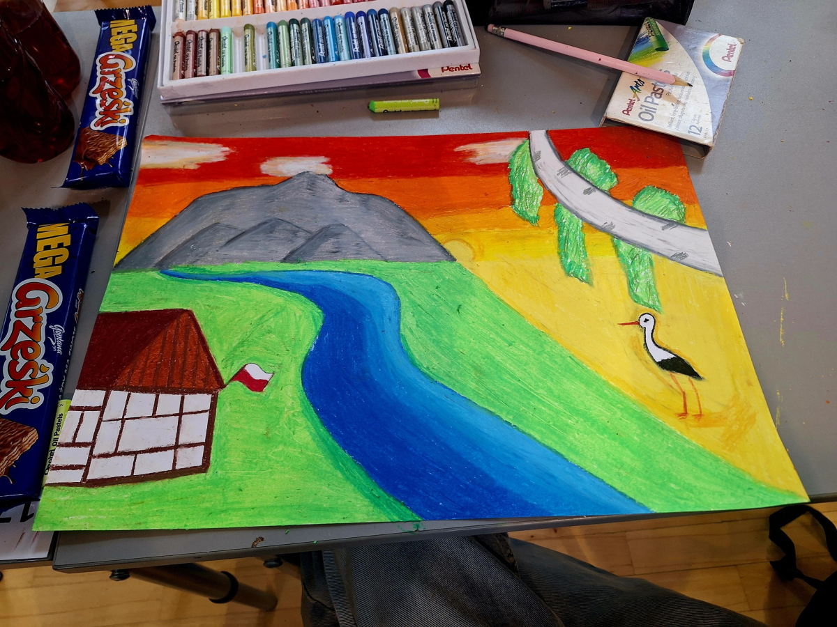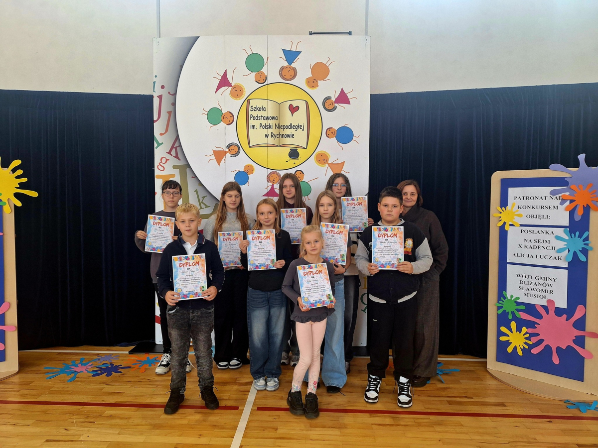 30 października do szkoły w Rychnowie, aby wykonać pracę ukazującą piękno Ziemi Ojczystej, udali się: Nadia Owsińska, kl. IIa, Dawid Ratajczyk, kl. IIIb, Łukasz Bednarek, kl. IIIa, Vanessa Kubiak, kl. VI, Sara Juszczak, kl. VI, Hanna Nawrocka, kl. VI oraz Lena Nawrocka, kl. VII, Laura Kosmowska, kl. VII, Nadia Marciniak, kl. VII. Wszyscy nasi młodzi artyści wykazali się kreatywnością, talentem malarskim i wyobraźnią.