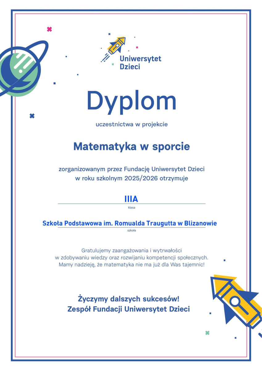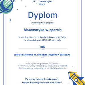 Celem projektu było rozwijanie kreatywności dzieci oraz wzmocnienie w nich umiejętność samodzielnego, logicznego i krytycznego myślenia. Podczas lekcji realizowanych w ramach cotygodniowych zajęć rozwijających umiejętności matematyczne uczniowie poznali zastosowanie matematyki w architekturze, projektowaniu mody, dietetyce, ekonomii i logistyce w powiązaniu z motywem sportowym.