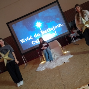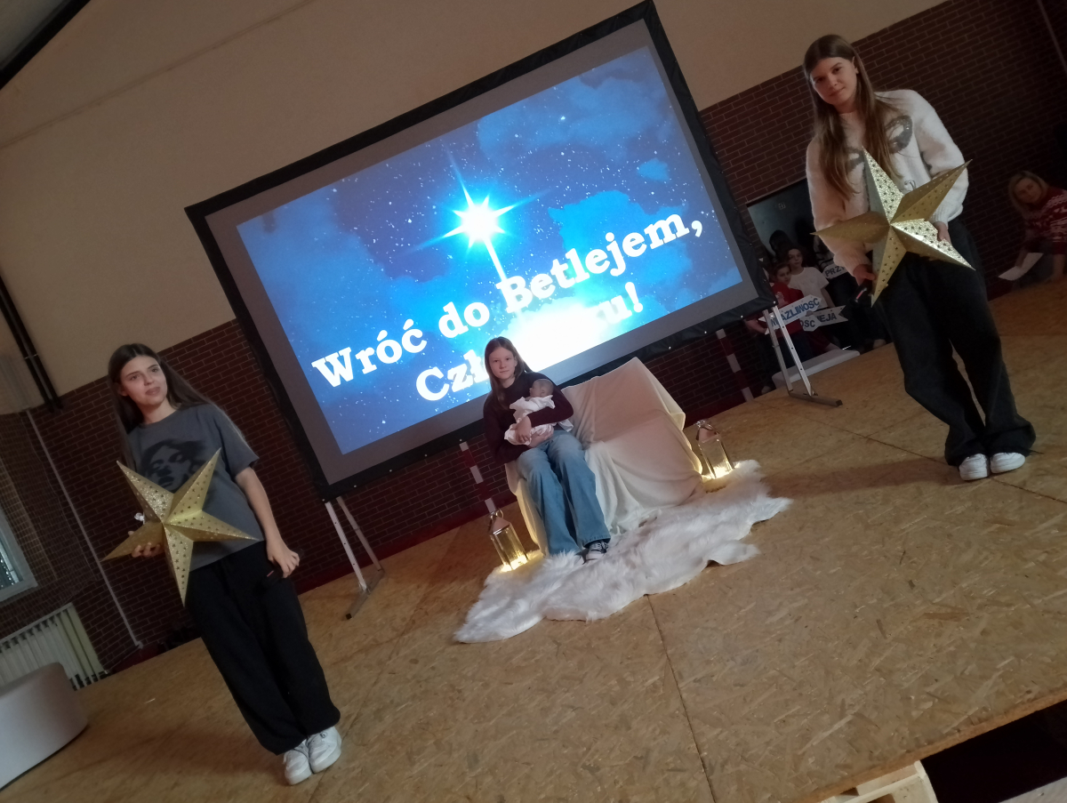 Mitologicznie rzecz ujmując - na początku był chaos. Kontaminując z Biblią, stwierdzić można, że na początku było słowo, dużo słów. Nie można jednak zaprzeczyć, że przygotowania do bożonarodzeniowego spektaklu, który wystawiony został podczas kolejnej już gminnej wigilii, był to fantastyczny czas. Można było bowiem zintegrować się wzajemnie, dużo się od siebie nauczyć, zjeść pizzę, czy udać na wspólną wycieczkę. Jedni zatem szponcili, inni powtarzali idiom cyfrowy: "six seven", a jeszcze inni chętnie powiedzieliby pewnie: "OKPA". Ostatecznie jednak wszyscy reagowali na hasło: "Wróć do Betlejem, Człowieku", by koniec końców, stanąć na wysokości zadania.