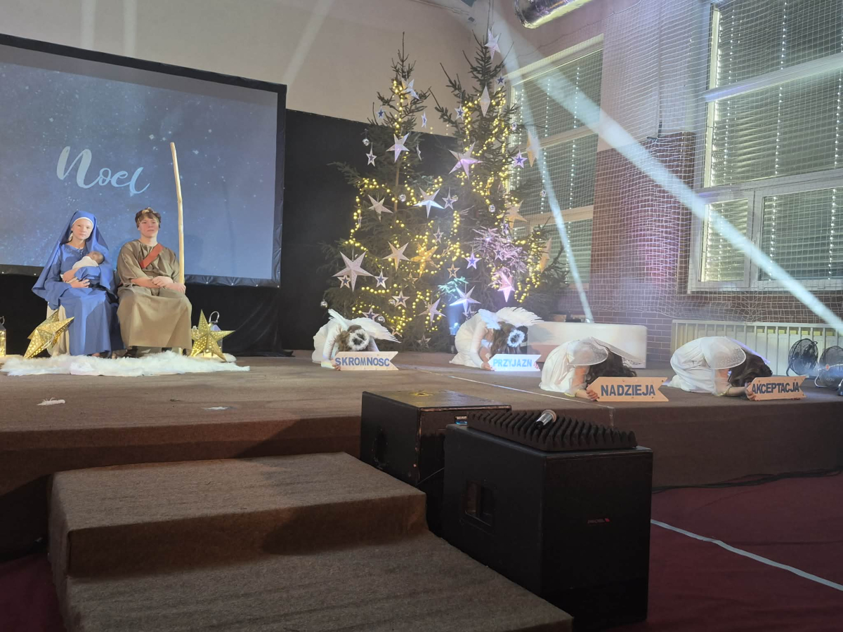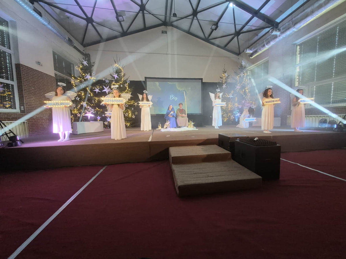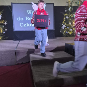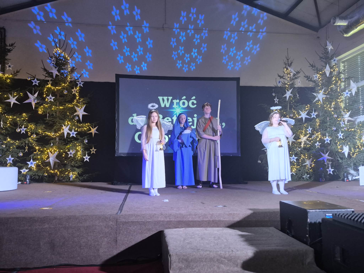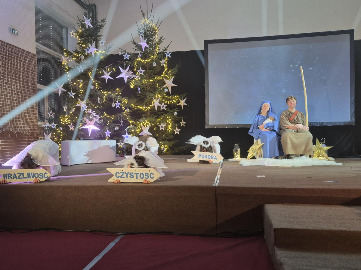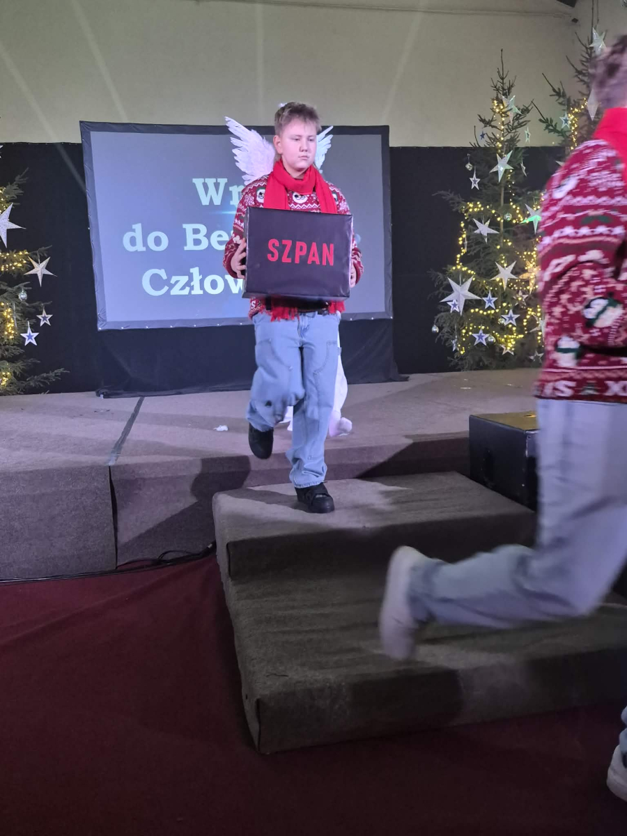 W piątek, 19 grudnia, klasowe wigilie uświetnił występ - preludium gminnej wigilii. Wszystko po to, by całość mogła zobaczyć szkolna społeczność. Wigilia Bożego Narodzenia. Współczesny, zabiegany świat – Święta w Egipcie, intratna pozycja w korporacji i firmowa wigilia, drogie prezenty oraz zewnętrzne piękno, a także nowe, technologiczne gadżety pod choinką – brzmi kusząco. A ludzie? Chcą być jak z reklamy – najbogatsi, najpiękniejsi, najmądrzejsi, ale w tym wszystkim zapomnieli o Jezusie i drugim człowieku, budując swoimi pragnieniami wieżę Babel. O ich duszę toczy się psychomachia – walka dobra ze złem. Zgubili bowiem drogę do Betlejem. Na szczęście w niebie jest na to plan i na pomoc wyruszają ludziom aniołowie, by wskazać im dobrą drogę, żeby zrozumieli oni istotę Świąt Bożego Narodzenia, a tym samym sens pielgrzymowania, będącego przenośnią ludzkiego życia. Tak w skrócie opisać by można fabułę tegorocznego spektaklu świątecznego o wymownym tytule: „Wróć do Betlejem, Człowieku!”, wystawionego na scenie podczas kolejnej już wigilii gminnej, którego próba generalna odbyła się w piątkowe przedpołudnie.