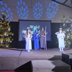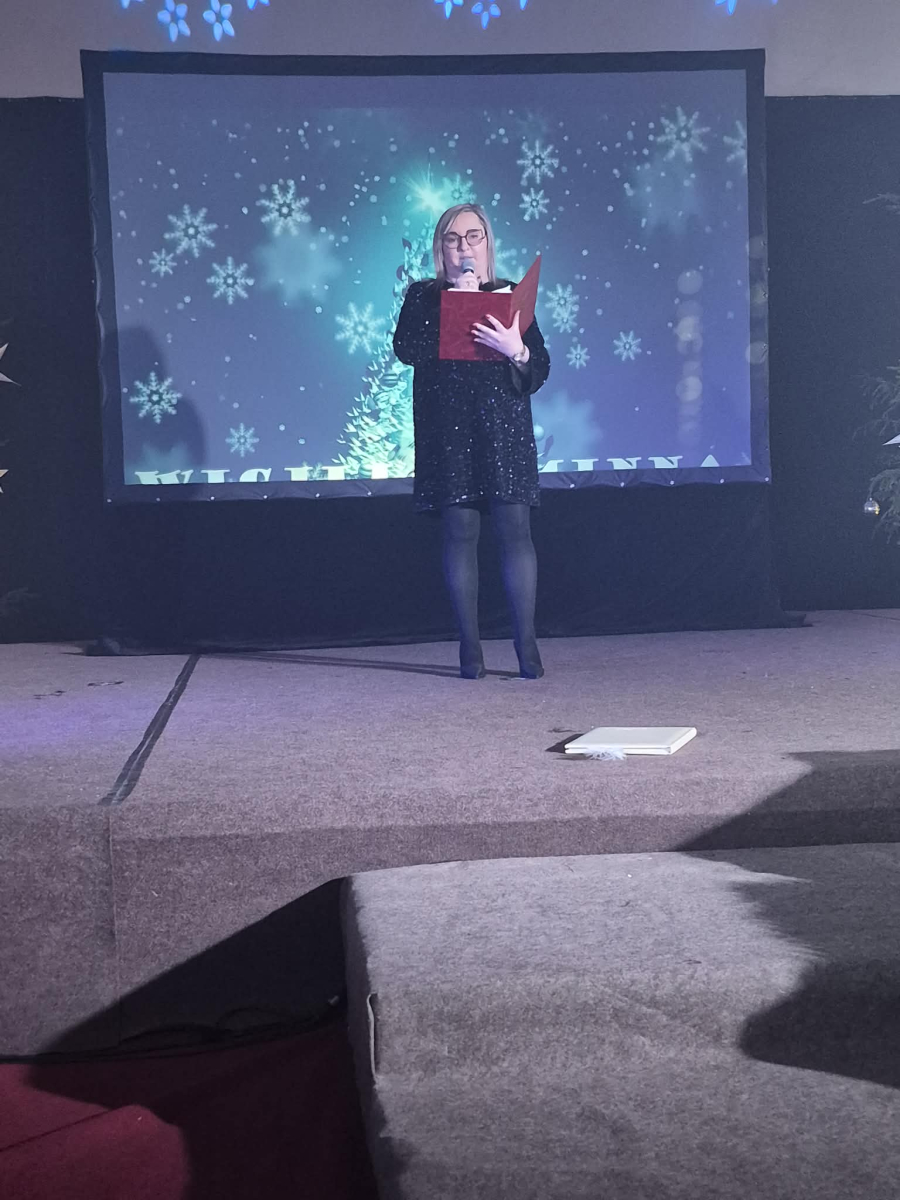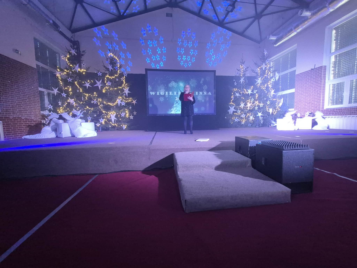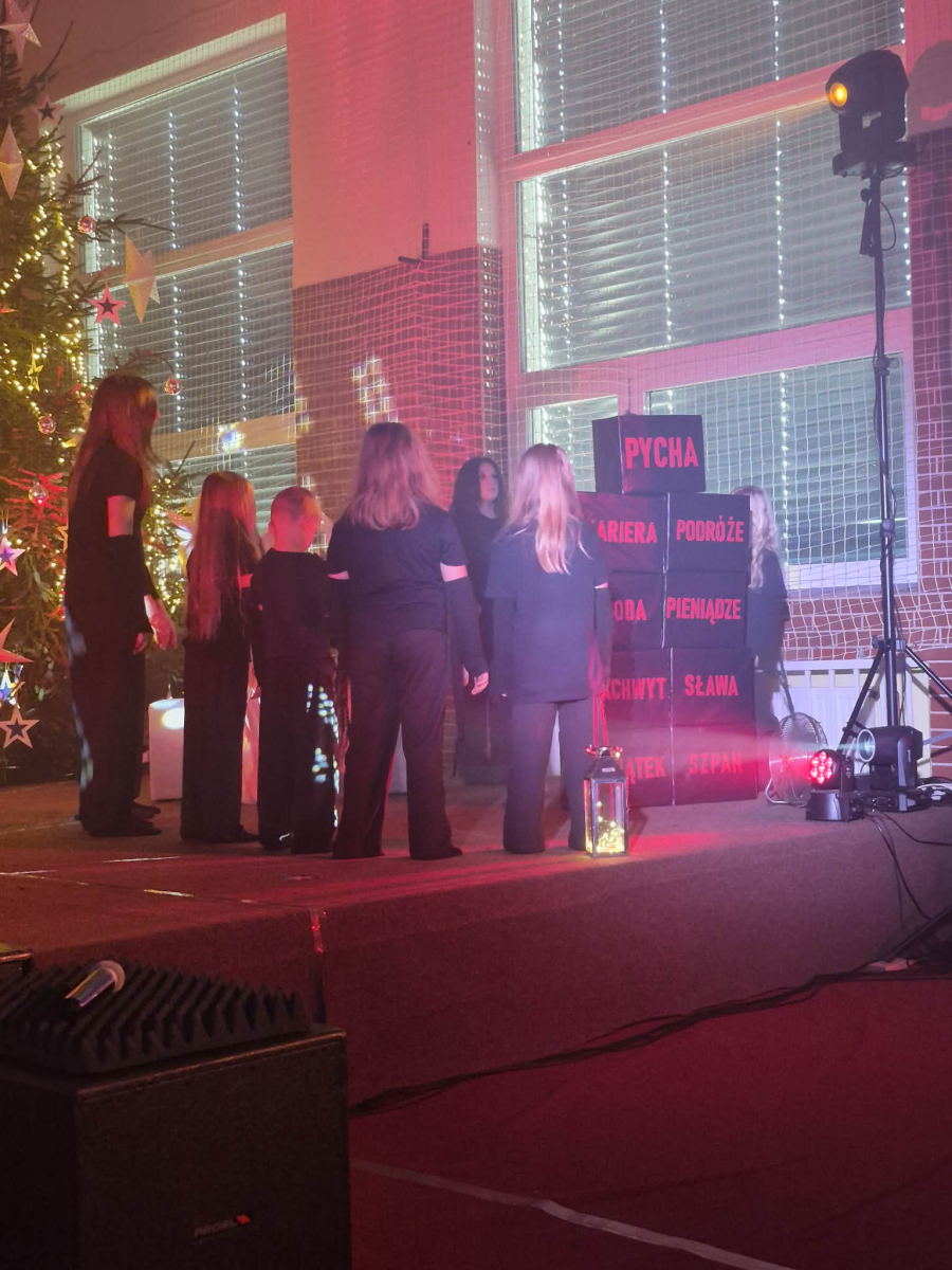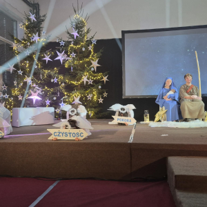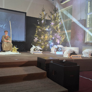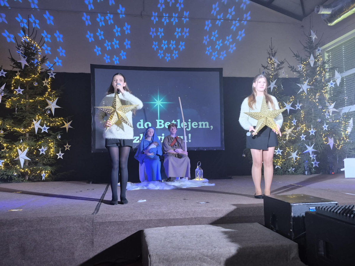 W piątek, 19 grudnia, klasowe wigilie uświetnił występ - preludium gminnej wigilii. Wszystko po to, by całość mogła zobaczyć szkolna społeczność. Wigilia Bożego Narodzenia. Współczesny, zabiegany świat – Święta w Egipcie, intratna pozycja w korporacji i firmowa wigilia, drogie prezenty oraz zewnętrzne piękno, a także nowe, technologiczne gadżety pod choinką – brzmi kusząco. A ludzie? Chcą być jak z reklamy – najbogatsi, najpiękniejsi, najmądrzejsi, ale w tym wszystkim zapomnieli o Jezusie i drugim człowieku, budując swoimi pragnieniami wieżę Babel. O ich duszę toczy się psychomachia – walka dobra ze złem. Zgubili bowiem drogę do Betlejem. Na szczęście w niebie jest na to plan i na pomoc wyruszają ludziom aniołowie, by wskazać im dobrą drogę, żeby zrozumieli oni istotę Świąt Bożego Narodzenia, a tym samym sens pielgrzymowania, będącego przenośnią ludzkiego życia. Tak w skrócie opisać by można fabułę tegorocznego spektaklu świątecznego o wymownym tytule: „Wróć do Betlejem, Człowieku!”, wystawionego na scenie podczas kolejnej już wigilii gminnej, którego próba generalna odbyła się w piątkowe przedpołudnie.