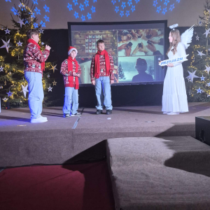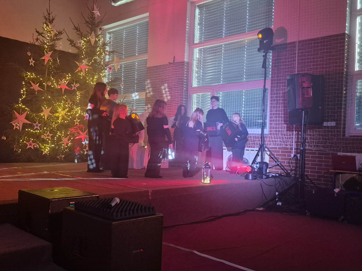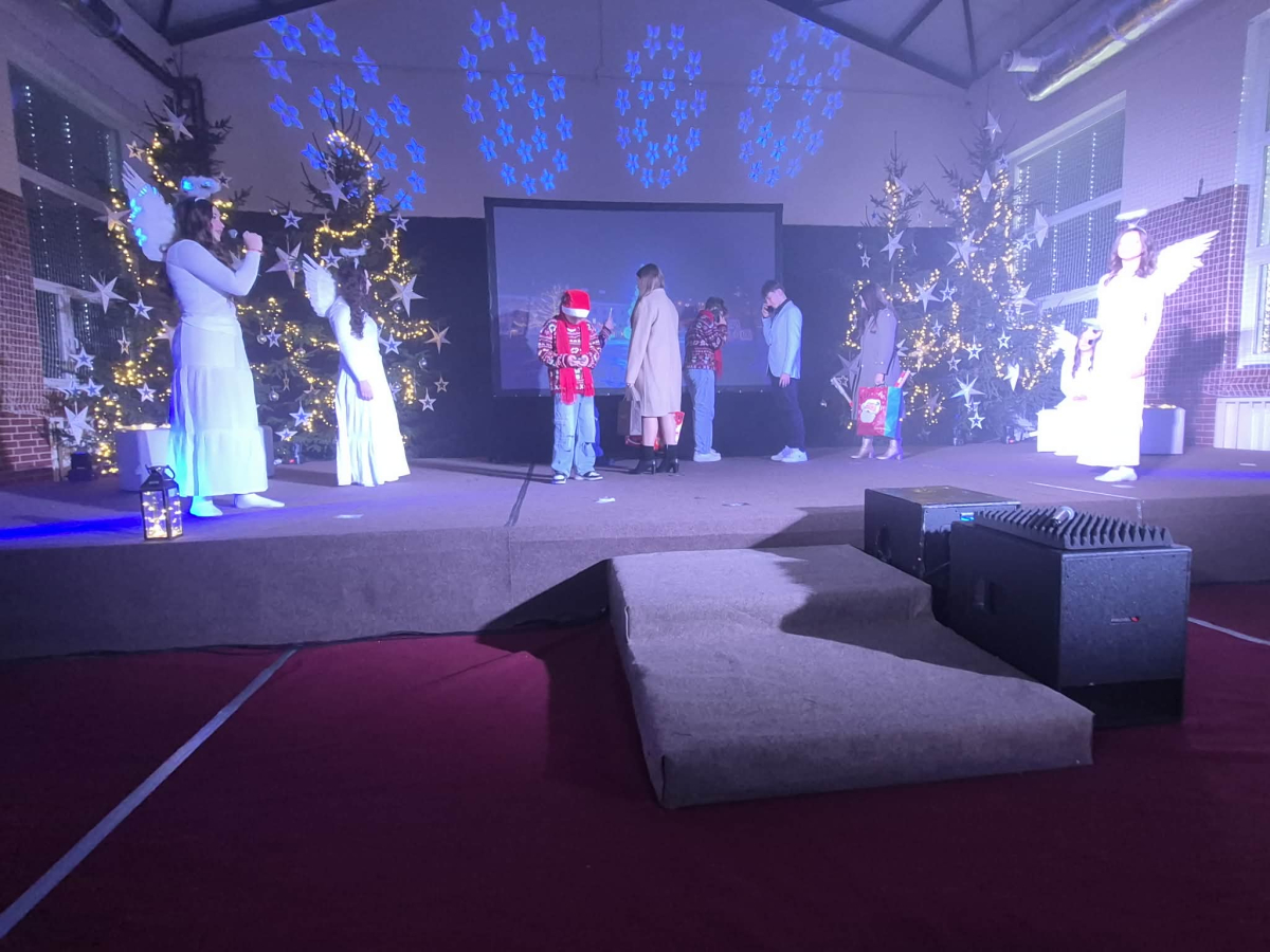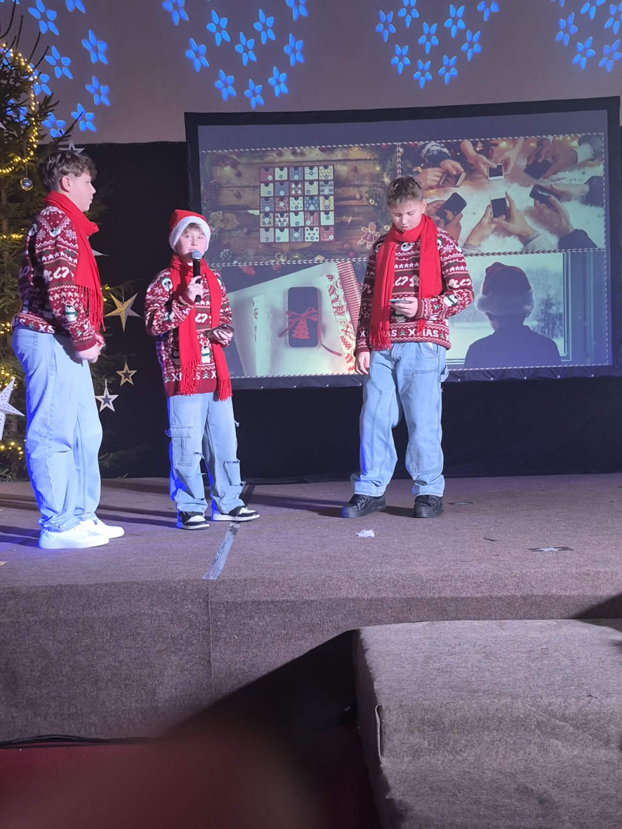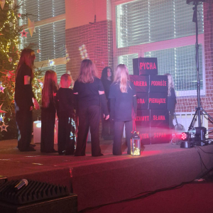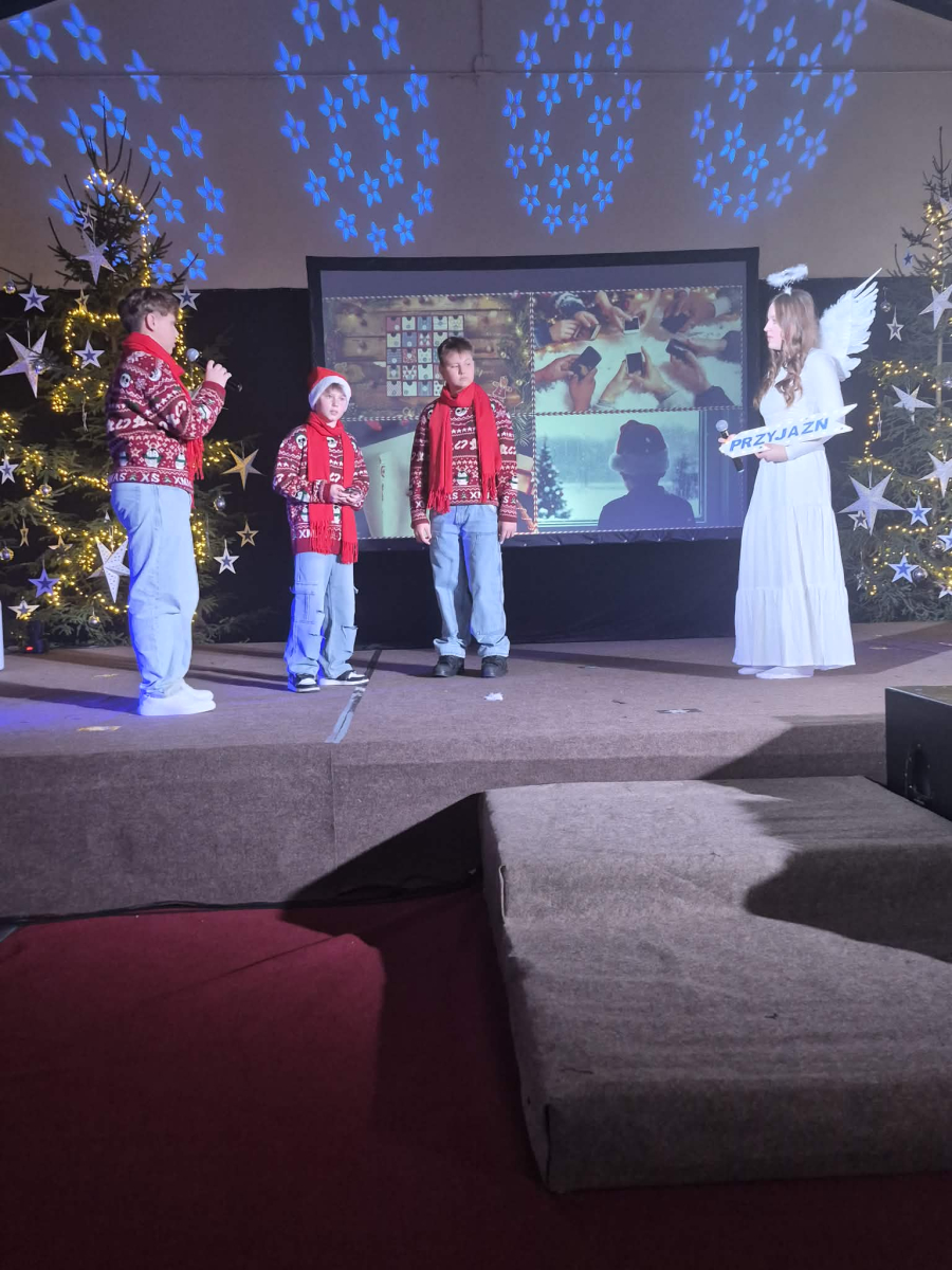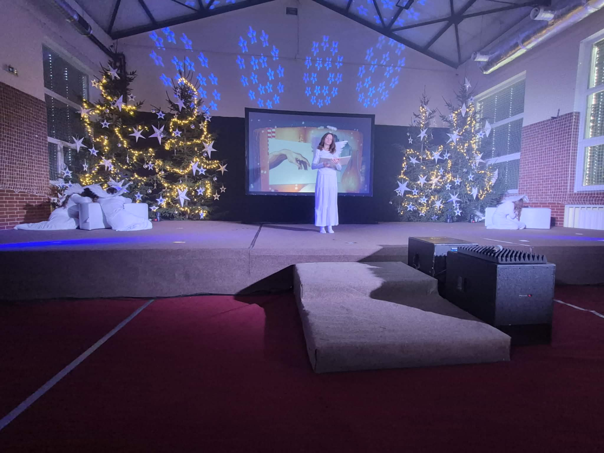 W piątek, 19 grudnia, klasowe wigilie uświetnił występ - preludium gminnej wigilii. Wszystko po to, by całość mogła zobaczyć szkolna społeczność. Wigilia Bożego Narodzenia. Współczesny, zabiegany świat – Święta w Egipcie, intratna pozycja w korporacji i firmowa wigilia, drogie prezenty oraz zewnętrzne piękno, a także nowe, technologiczne gadżety pod choinką – brzmi kusząco. A ludzie? Chcą być jak z reklamy – najbogatsi, najpiękniejsi, najmądrzejsi, ale w tym wszystkim zapomnieli o Jezusie i drugim człowieku, budując swoimi pragnieniami wieżę Babel. O ich duszę toczy się psychomachia – walka dobra ze złem. Zgubili bowiem drogę do Betlejem. Na szczęście w niebie jest na to plan i na pomoc wyruszają ludziom aniołowie, by wskazać im dobrą drogę, żeby zrozumieli oni istotę Świąt Bożego Narodzenia, a tym samym sens pielgrzymowania, będącego przenośnią ludzkiego życia. Tak w skrócie opisać by można fabułę tegorocznego spektaklu świątecznego o wymownym tytule: „Wróć do Betlejem, Człowieku!”, wystawionego na scenie podczas kolejnej już wigilii gminnej, którego próba generalna odbyła się w piątkowe przedpołudnie.