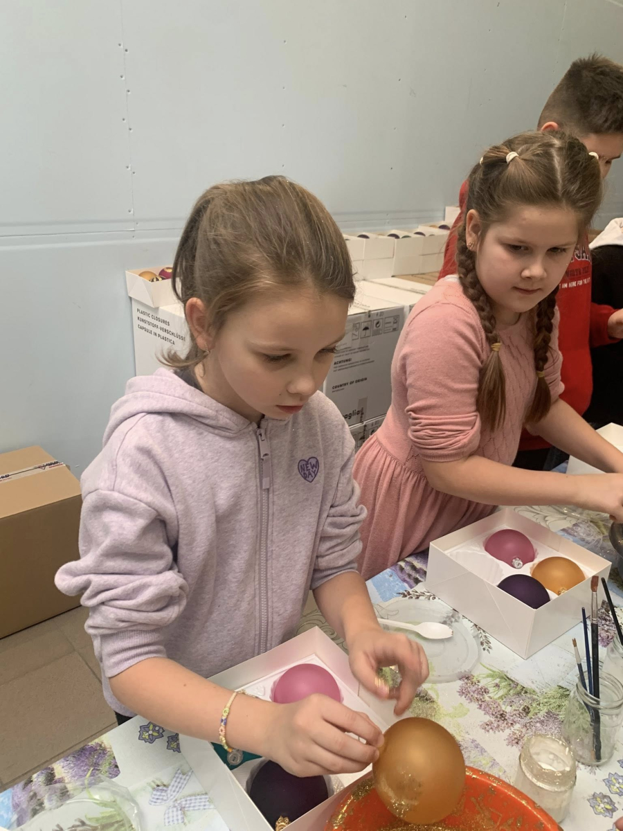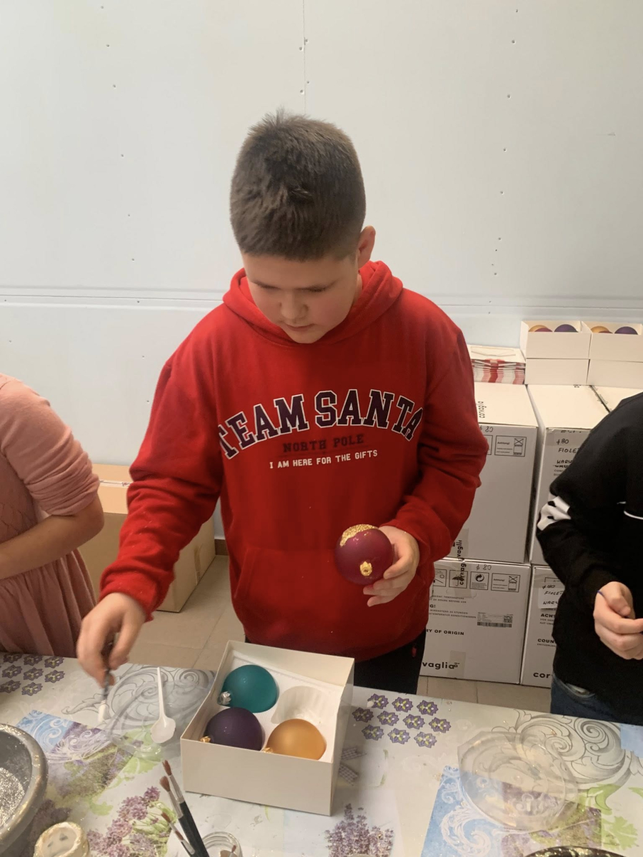 Największą atrakcją okazały się warsztaty, podczas których każdy uczeń samodzielnie ozdabiał bombki według własnego pomysłu. Kreatywność naszych młodych artystów nie miała granic!