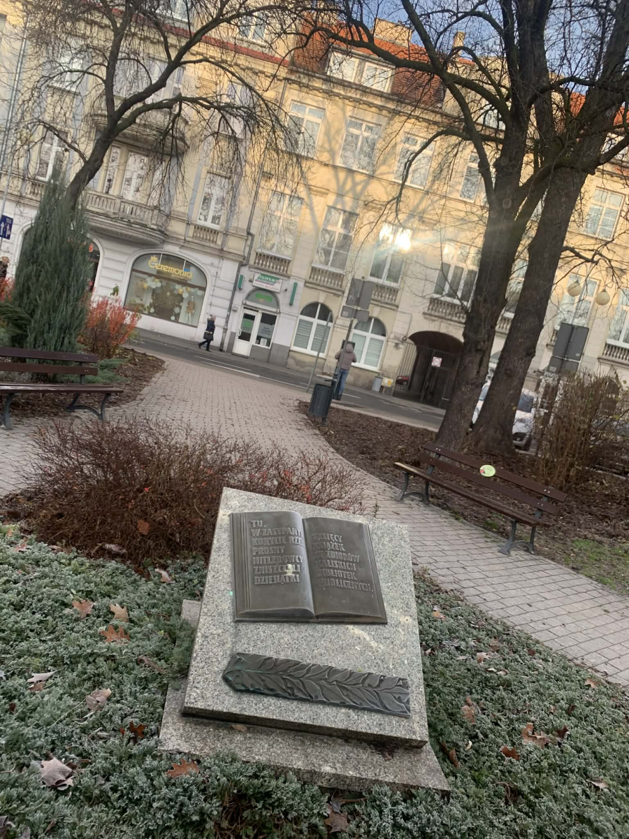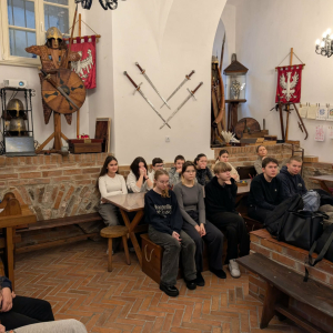 Uczniowie zwiedzili kaliską starówkę z przewodnikiem PTTK. Odwiedzając Kaliski Ratusz, poznali historię miasta i jego okolic, a także wysłuchali legendy o Baszcie Dorotce. Na zakończenie zwiedzania młodzież podziwiała panoramę Kalisza z tarasu widokowego wieży ratuszowej. Uczniowie zobaczyli również Pomnik Książki i poznali historię tego wyjątkowego miejsca.
